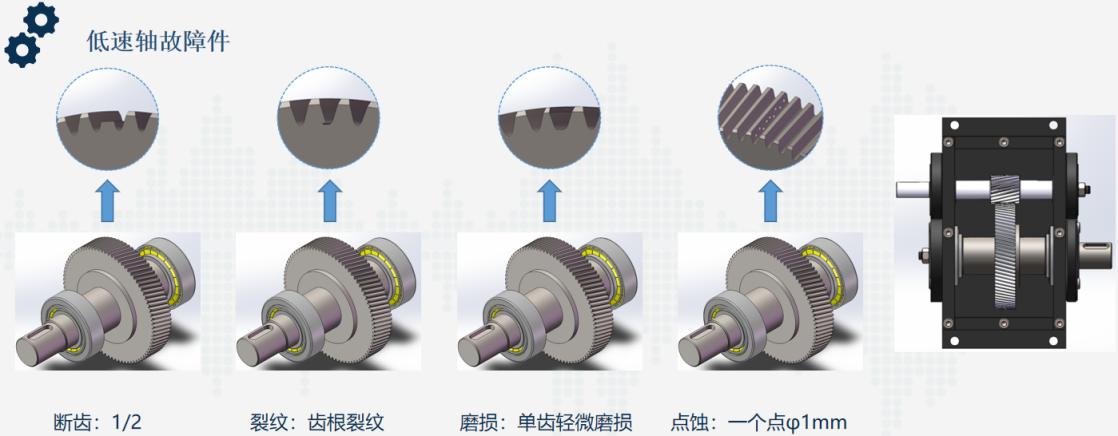 行星齿轮箱故障实验(包含:1套齿圈裂纹故障套件、4套低速轴齿轮故障套件、4套高速轴齿轮故障套件)