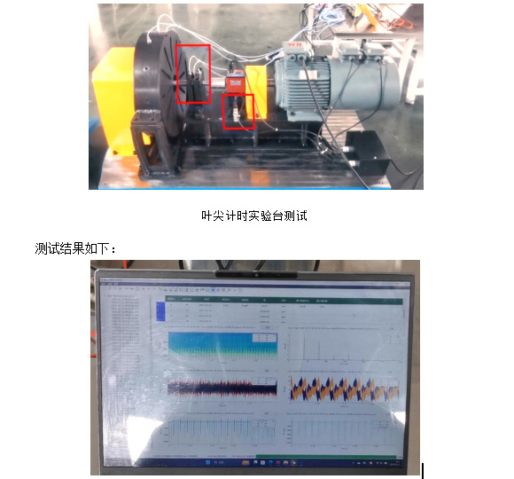 如图所示,在叶尖计时实验台安装振动加速度传感器、电涡流传感器,进行测试。测试结果如下 。